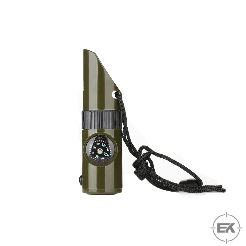 1 x 7'si 1 Arada Acil Durum Düdüğü (Pusula, Fener, Termometre, Büyüteç, Depolama Bölmeli)