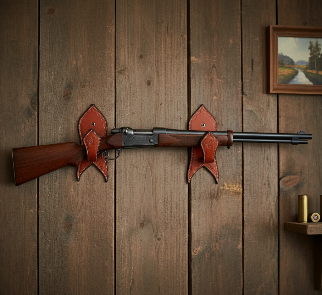 Koleksiyonunuzu gururla sergilemek için Deri Kaplı Tüfek Askısı Seti mükemmel bir seçimdir.