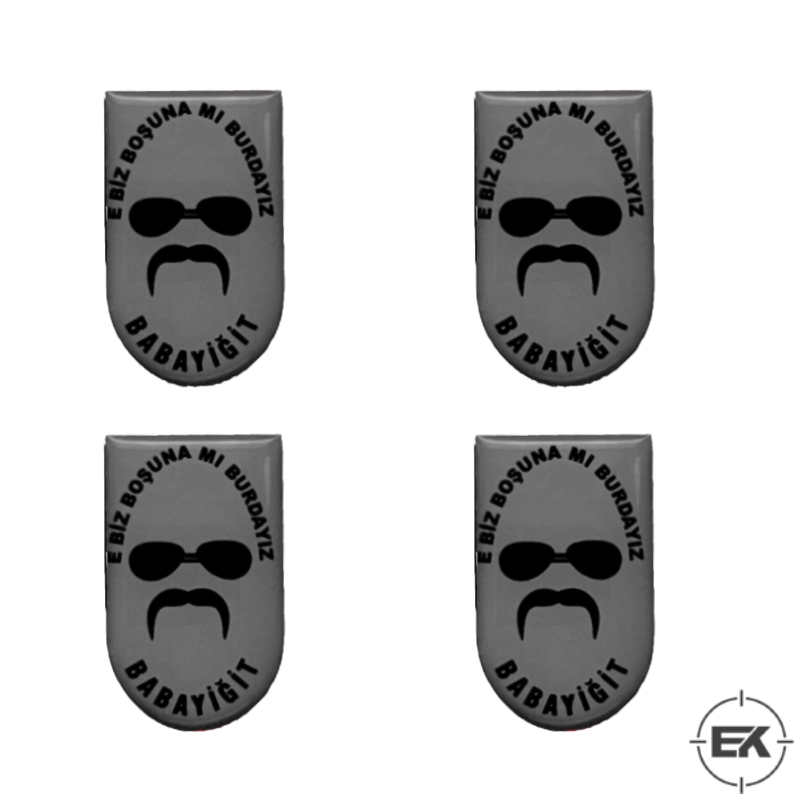 Tabanca şarjörlerinizi kişiselleştirmenin ve onlara mizahi ve karakteristik bir dokunuş katmanın en şık yollarından biri olan bu "E Biz Boşuna mı Burdayız Babayiğit" tasarımlı damla sticker, estetik ve dayanıklılığı bir araya getirir. Şarjör kapağınıza (base plate) mükemmel uyum sağlayarak tabancanızın görünümünü anında zenginleştirir.