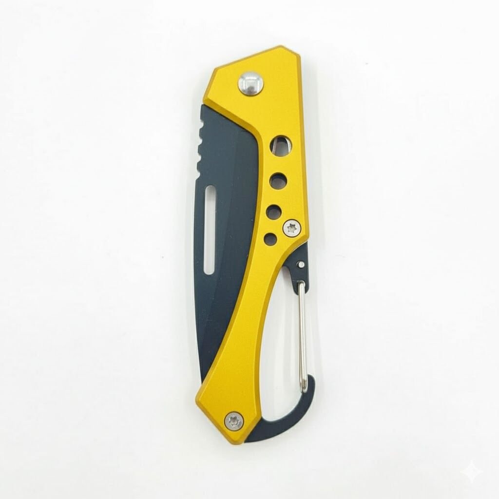 Karabina Klipsi: Çakının alt kısmında bulunan karabina klipsi, ürünü anahtarlığa, kemere veya sırt çantası askısına kolayca takmanızı sağlar. Bu sayede her an elinizin altında olur.
