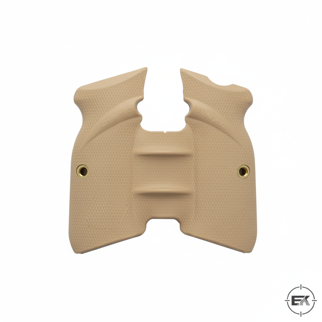 Sarsılmaz Kılınç 2000 Light, Kılınç 2000 Mega ve Sarsılmaz P8L-S model tabancalarınız için özel olarak tasarlanmış, bej (kum rengi) tonunda Vidalı Ortopedik Kabze! Atış hassasiyetini ve kontrolünü artıran bu kabze, ergonomik yapısıyla üstün tutuş ve yorulmadan atış konforu sunarken, modern ve estetik görünümüyle de dikkat çeker."