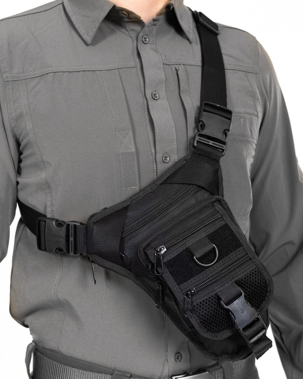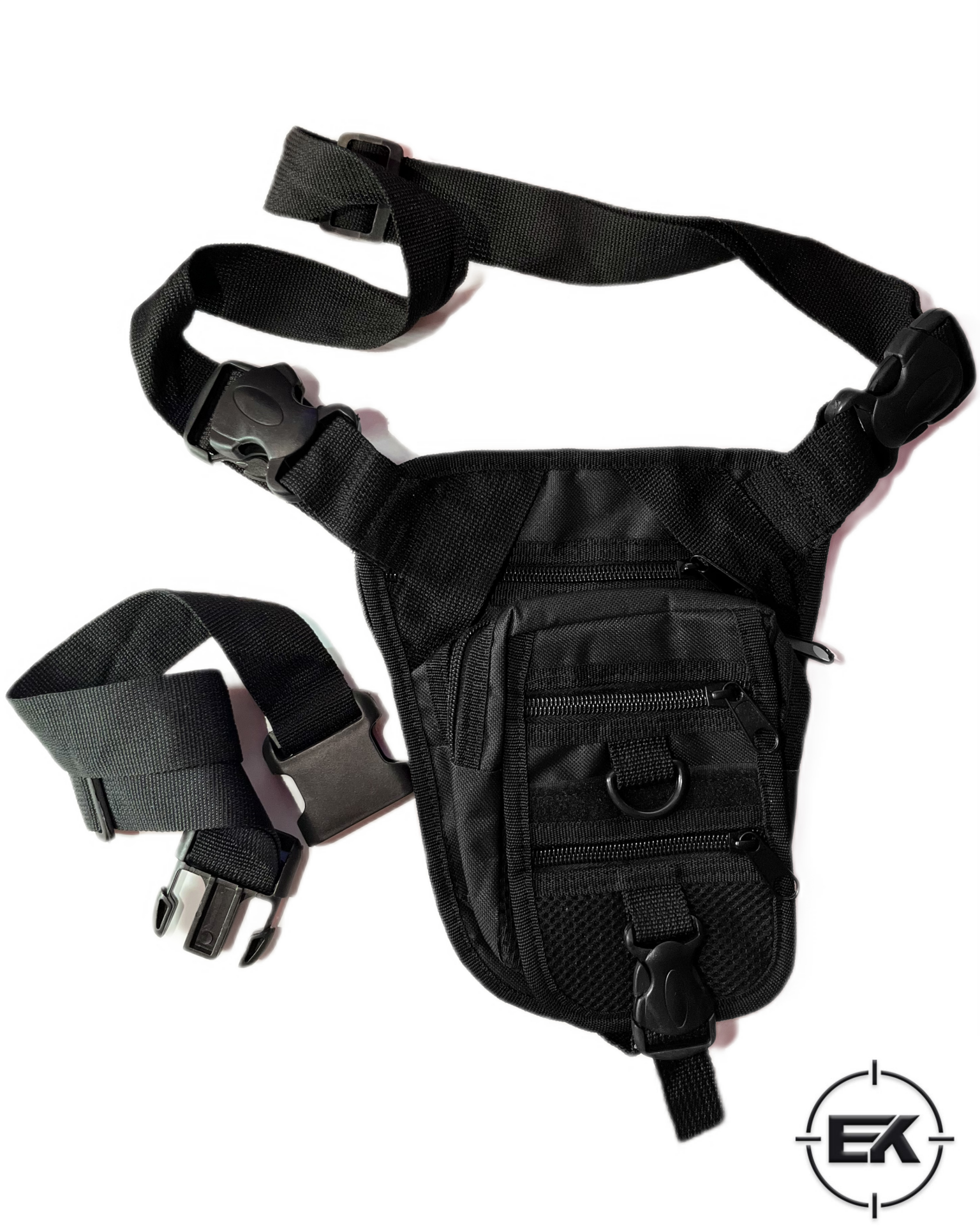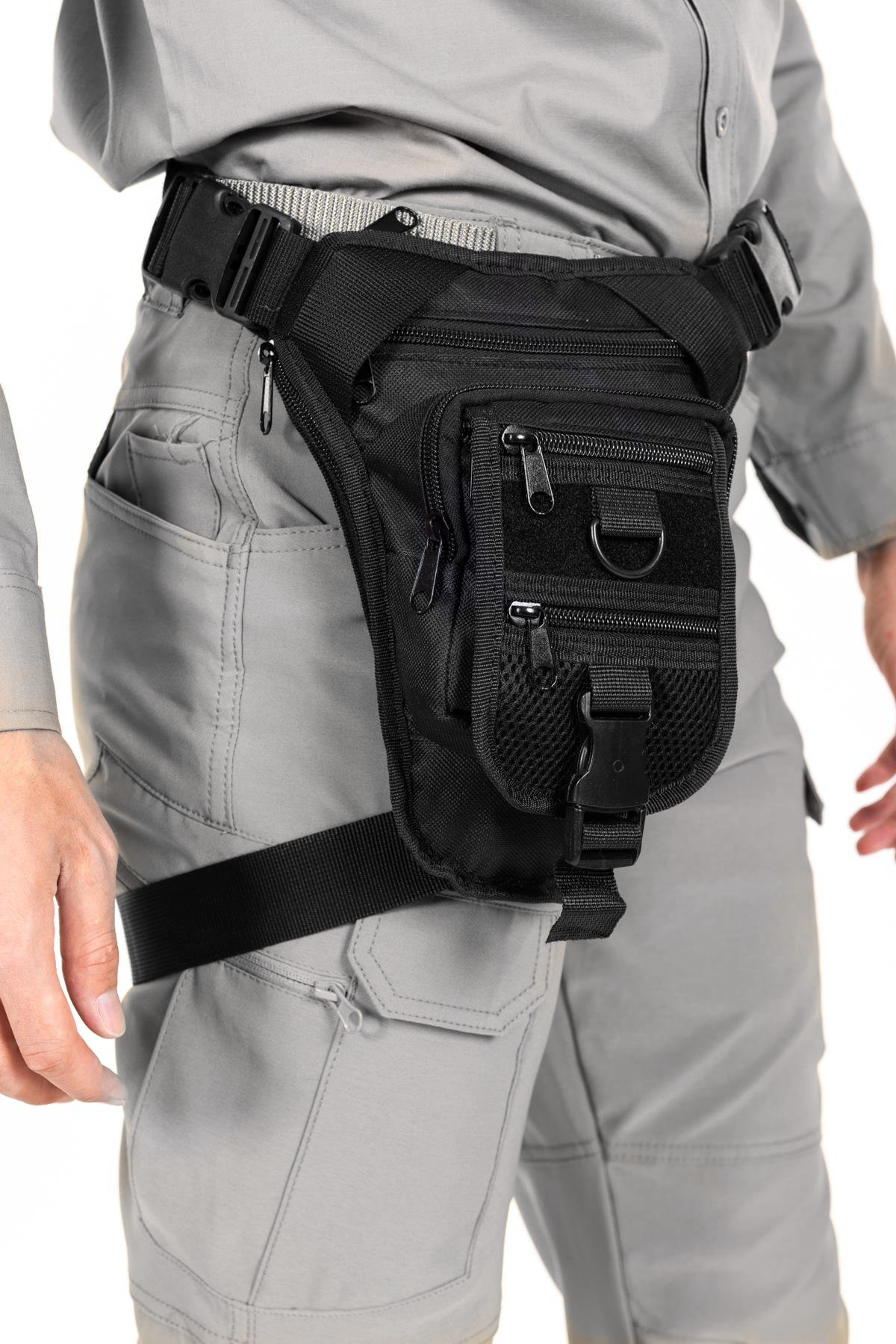 Bacak Bağlamalı Tasarım: Çanta, hem bel kemerine hem de bacağa sabitlenen ek kayışlar sayesinde, hareket halindeyken (koşu, tırmanma, motosiklet vb.) bile vücuda sıkıca sabitlenir ve sallanmayı engeller.